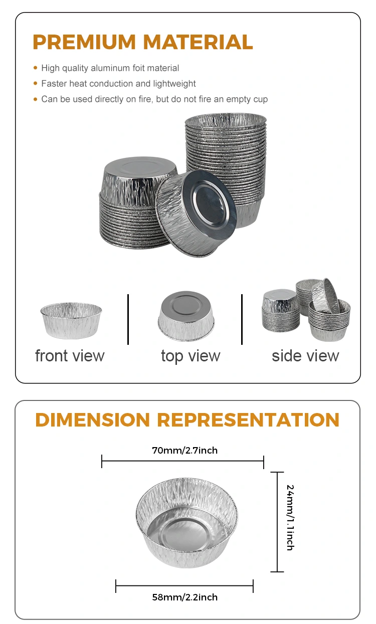 Yunchu aluminum foil supplier Cake baking cup silver Aluminum Foil Food Container baking and shaping two-in-one, multi-use aluminum foil container, baking, barbecue Wide range of use, can be heated over open flame and resistant to baking, instead of pots, baking shops, homes, food factories can be applied, small size to enjoy baking life, can be used as a baking mold, integrated molding does Не е необходимо да се сгъва и оформя, фантастична употреба, един мухъл многоцелев, пудинг, торта, яйчни тарта, задушени яйца, барбекю и др.