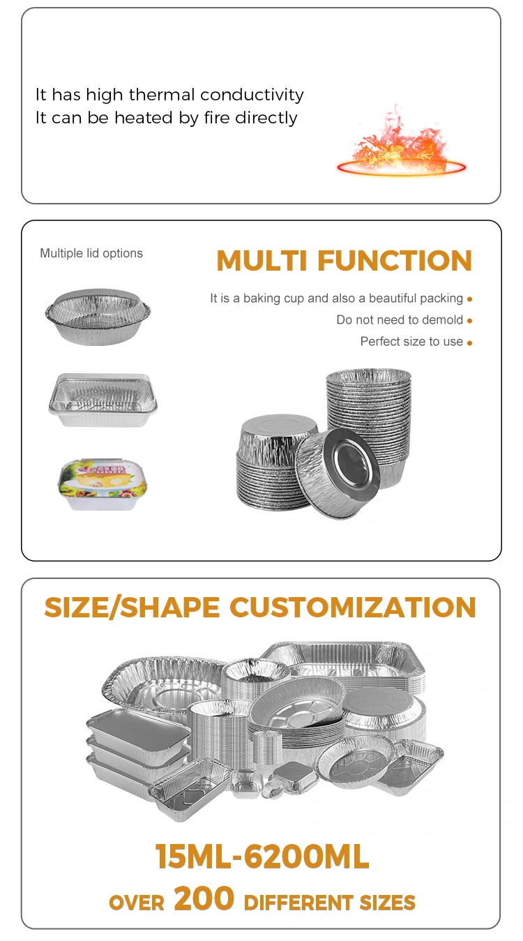 ​Yunchu aluminum foil supplier Cake baking cup silver Aluminum Foil Food Container baking and shaping two-in-one, multi-use aluminum foil container, baking, barbecue Wide range of use, can be heated over open flame and resistant to baking, instead of pots, baking shops, homes, food factories can be applied, small size to enjoy baking life, can be used as a baking mold, integrated molding does Не е необходимо да се сгъва и оформя, фантастична употреба, един мухъл многоцелев, пудинг, торта, яйчни тарта, задушени яйца, барбекю и др.