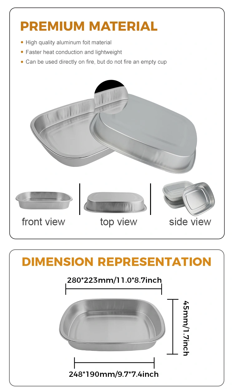 Yunchu е опитен доставчик на сребърни квадратни контейнери от алуминиево фолио за храна за вкъщи за еднократна употреба в Китай. Тези еднократни сребърни квадратни кутии от алуминиево фолио в кутии за храна определят свежестта, безопасността и доставката на храната, които директно определят намерението на потребителя да купи обратно и репутацията на марката на търговеца. Този контейнер от алуминиево фолио, със своите двойни предимства на материала и дизайна, отговаря точно на основните нужди на сцената за вкъщи, като дава възможност на търговците за кетъринг, така че всяко хранене да може да достигне до потребителите прясно и безопасно.