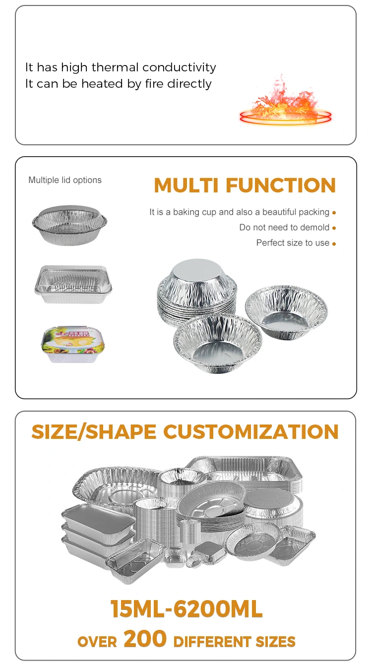 Сребърен контейнер от алуминиево фолио за еднократна употреба на Foshan Yunchu Aluminium Foil Technology Co., Ltd., разчитащ на усъвършенствани автоматизирани производствени линии и строг контрол на качеството, майсторска изработка на тава за еднократна употреба от алуминиево фолио Yunchu, сребърен контейнер от алуминиево фолио, с хранителни материали и отлична производителност, подходящ за множество битови и търговски сценарии, което прави печенето по-безпроблемно и вкусно.