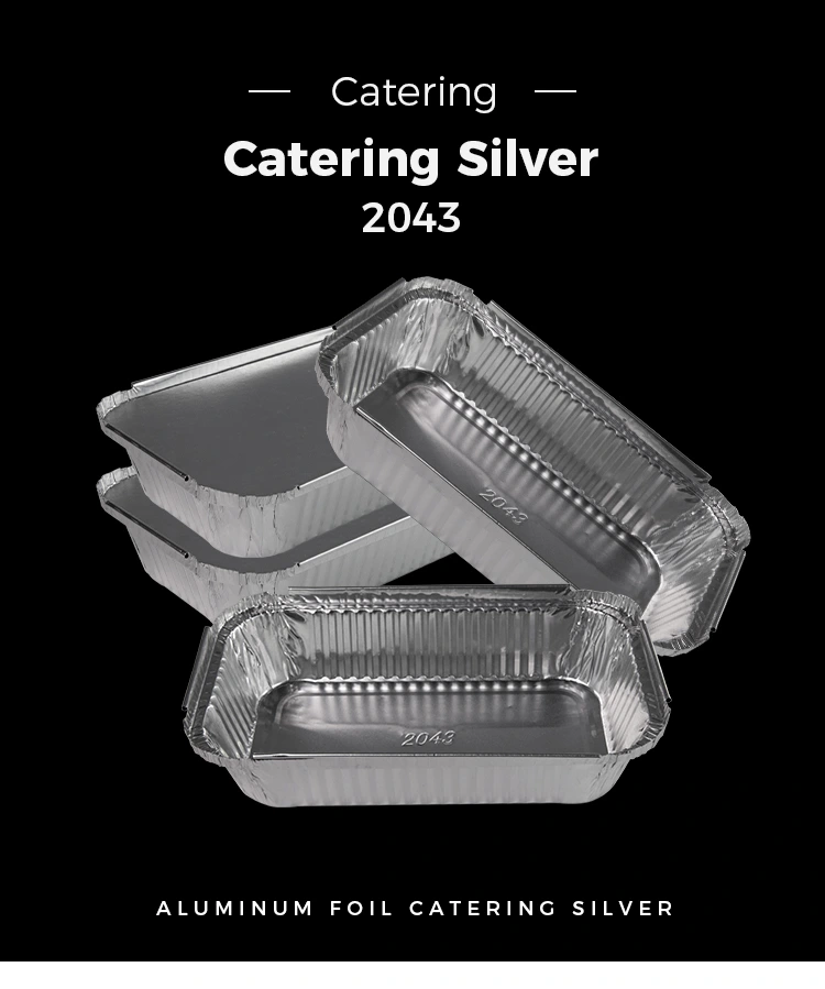 Моделът 2043 Забавна кутия за бързо хранене барбекю сребърно алуминиево фолио контейнери от доставчик на алуминиеви фолио на Yunchu е идеален за фабрика за обществено хранене, заемане и фабрика за хранителни линии. Този продукт приема високостранен дизайн, поддържа поръчка на едро на алуминиеви комбинации от фолио и може да предоставя персонализирани услуги за печат на модели според нуждите на клиентите. Количеството за минимално поръчка е 1000 броя, с различни специфични спецификации и модели, добре дошли да се свържете с персонала по продажбите за подробна информация.