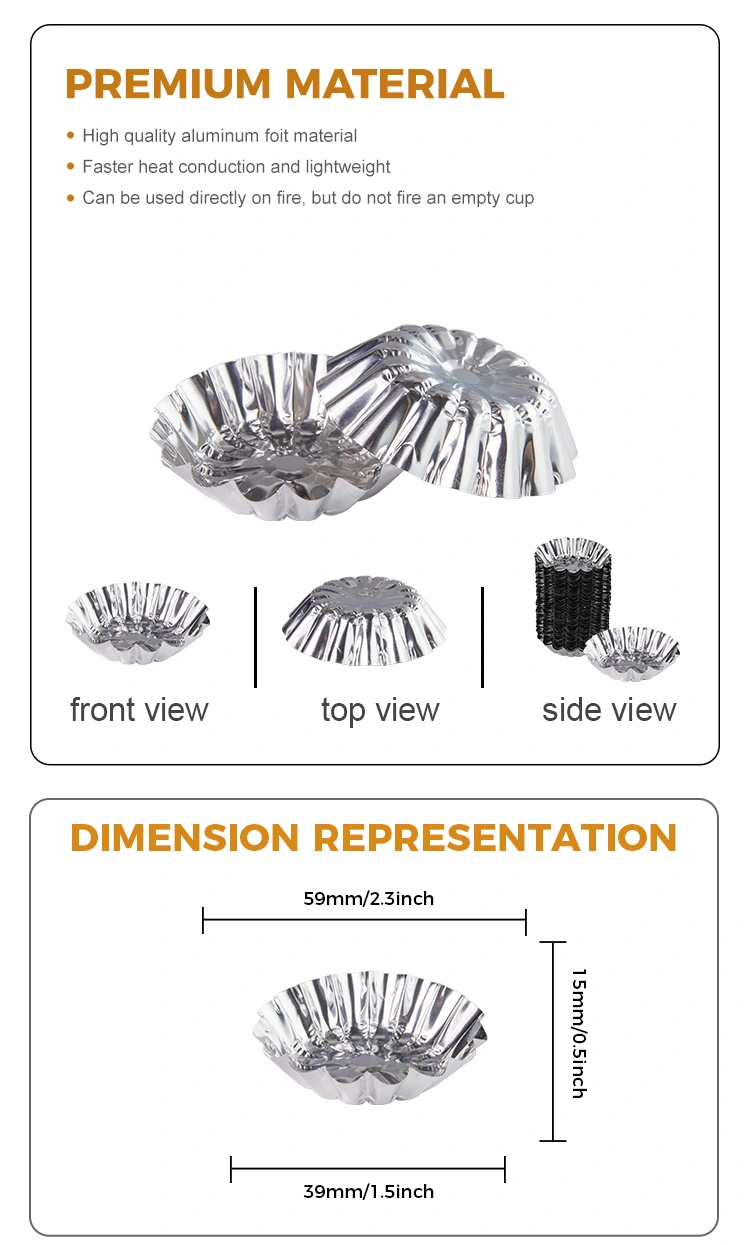 Yunchu алуминиево фолио яйчни тарта се пекат във въздушен фритюрник сребърно алуминиево фолио контейнер за храна wholesale products, aluminum foil material, safe and non-toxic, made of aluminum foil food-grade material, with good thermal conductivity, safe and non-toxic uses are rich and diverse, so that you can use it more at ease, easy to remove the mold when using high temperature, after the finished product is completed, easy to remove the film, non-stick bottom, do not damage the shape, thicken and harden the material is not easy to deform, good pressure resistance, say Сбогом на проблемите с измиването на тенджерата и лесно защитавайте саксията, изолирайте петна от масло след употреба, не е необходимо да се почиства, гладкото дъно не е лесно да се изгори и да се придържа към дъното, нелепната храна е лесна за приготвяне, дъното е гладка, може да издържи -20 ° C ~ 300 ° C, може да се нагрява чрез отворен пламък, а формата се нагрява равномерно.
