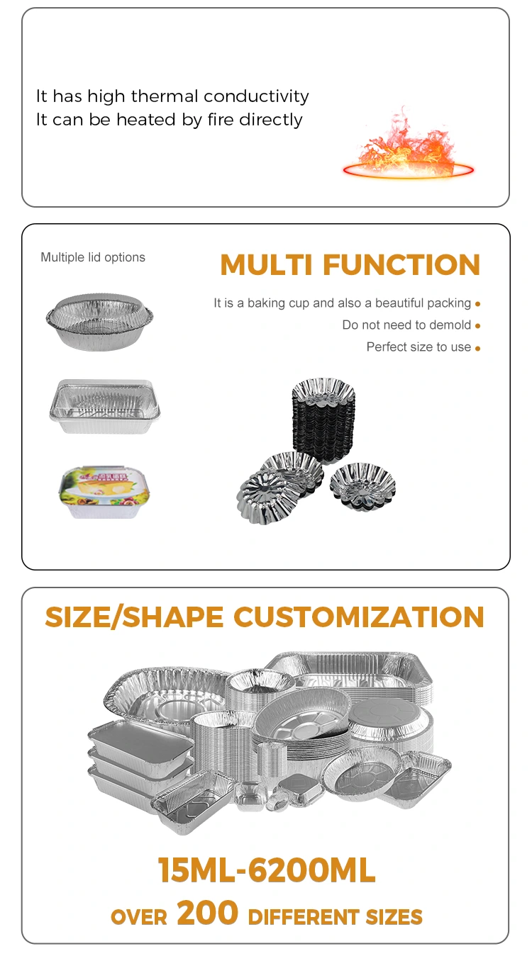 wholesale products, aluminum foil material, safe and non-toxic, made of aluminum foil food-grade material, with good thermal conductivity, safe and non-toxic uses are rich and diverse, so that you can use it more at ease, easy to remove the mold when using high temperature, after the finished product is completed, easy to remove the film, non-stick bottom, do not damage the shape, thicken and harden the material is not easy to deform, good pressure resistance, say Сбогом на проблемите с измиването на тенджерата и лесно защитавайте саксията, изолирайте петна от масло след употреба, не е необходимо да се почиства, гладкото дъно не е лесно да се изгори и да се придържа към дъното, нелепната храна е лесна за приготвяне, дъното е гладка, може да издържи -20 ° C ~ 300 ° C, може да се нагрява чрез отворен пламък, а формата се нагрява равномерно.