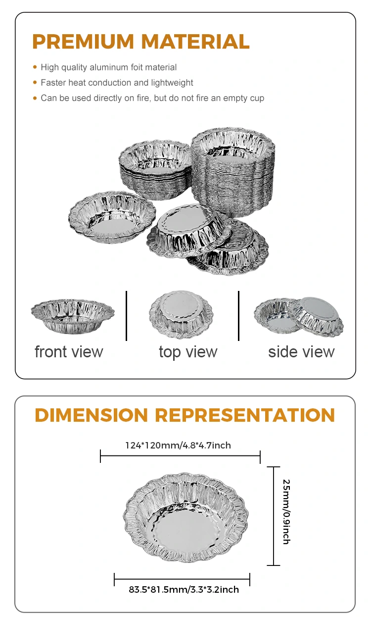 Yunchu алуминиево фолио доставчик дантела кръгла торта за печене Сребърна алуминиева фолио контейнери, много удобни за печене на торти, яйчни тарта и пържене на въздух, с много функции, дебели и издръжливи за печене. Когато избирате форми за печене, какво цените най -много? Надежден ли е материалът? Лесно ли е да се изпуска? Удобно ли е от потребителя? Този дантелен кръгъл торта за печене сребърно алуминиево фолио контейнер отговаря на вашите нужди от форми за печене! Едно цялостно формован, удебелен и издръжлив за печене, изработен от алуминиев фолио за контакт с 8011, безопасен за контакт с храна, не лесно деформиран или изтичащ, равномерна топлинна проводимост, не лесно изгаряна или преварена, вкусна и безопасна за приготвяне, устойчива на масло и петна, лесна за размазване, с дантела наоколо за лесно захващане, оформената форма, я прави лесна за справяне, а дъното е закръглена и гладка за изработка, като се изработва, като се раздвижва от дъното, като отдолу е наоколо за лесно захващане, оформената форма.
