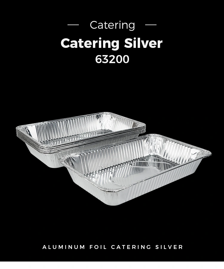 • Голям капацитет на открито тава за печене сребърни алуминиеви контейнери за фолиоГолям капацитет на открито тава за печене сребърни алуминиеви контейнери за фолио