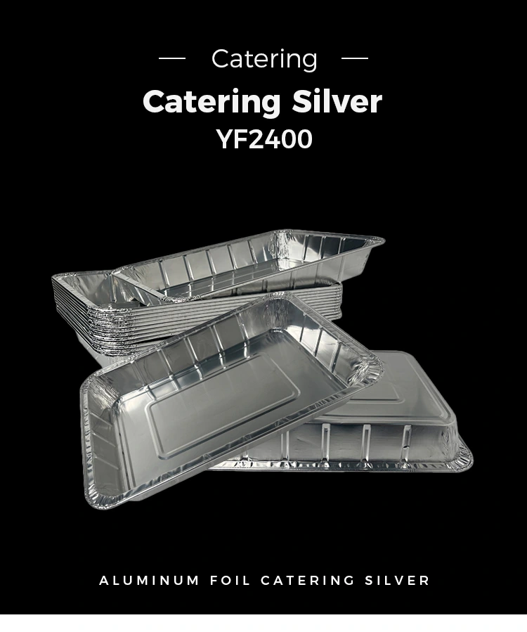 Yunchu Aluminum Foil Wholesale Model YF2400 Large grilled fish takeaway Silver Aluminum Foil Containers is suitable for all kinds of large baking equipment, such as baking ovens, retort boxes and barbecue grills, etc. This product is designed for disposable barbecue takeaway, can withstand high temperatures and make large cakes, suitable for placing food directly on the baking sheet for steaming, not only Не се придържа към чинията и не е лесен за изгаряне, но също така може директно да се свърже с отворения пламък. Продуктът е преминал съответните национални сертификати, за да осигури безопасна употреба. В допълнение, тя има отлична топлинна устойчивост и може да остане стабилна при високи температури, не е лесна за деформация или напукване. Претърпете строго вътрешно тестване, за да гарантирате безопасността и надеждността на продукта.