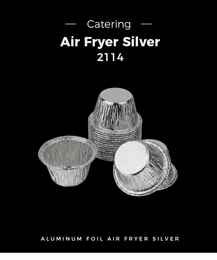 • Еднократен малък кръгъл фритюрник за сладкиши, сребърни контейнери за храна от алуминиево фолиоЕднократен малък кръгъл фритюрник за сладкиши, сребърни контейнери за храна от алуминиево фолио
