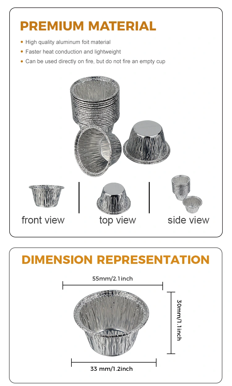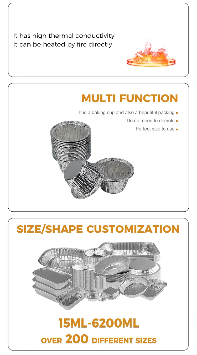 Еднократният сребърен контейнер от алуминиево фолио Yunchu Aluminium Foil Manufacturer използва 8011-O хранително алуминиево фолио, което е преминало сертификация за безопасност на FDA на САЩ и отговаря на стандартите за безопасност на SGS на ЕС за материали за контакт с храни. След професионален тест е без мирис и вредни остатъци. Може да контактува директно с всички видове храни. Не е лесно да се деформира или счупи. Той е ефективно устойчив на течове и против залепване. Може директно да държи течни съставки като тесто за торта, течност за пудинг, сос и др. Дизайнът на външния навит ръб е устойчив на надраскване, намалявайки риска от надраскване на ръцете. Диапазонът на температурна устойчивост обхваща -40 ℃ до 220 ℃ и може да се адаптира към фритюрници, фурни, уреди за пара и микровълнови фурни (средно ниска топлина). Може да се постави директно във въздушния фритюрник за печене на мини сладкиши и торти с яйца, а също така може да се използва за загряване на замразени съставки директно след размразяване, отговаряйки на различни нужди за готвене и печене.