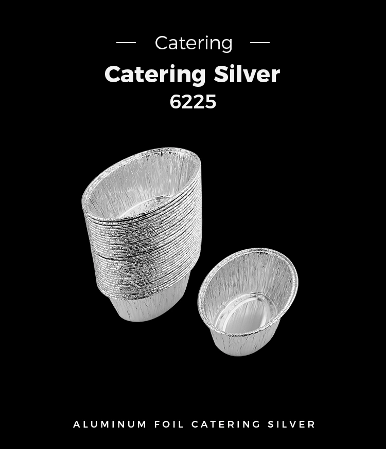 Yunchu алуминиев доставчик на фолио овална торта Сребърна алуминиева фолио контейнер за храна Модел 6225 е алуминиев контейнер за фолио, който може да се използва за търговска и домакинска употреба, която може да отключи повече употреби, като печени яйца, печени стриди, яйчни тръби, торти и др Алуминиев материал за фолио, интегрално формоване, стената е толкова гладка като огледало, което е едновременно красиво и практично, подгъваният дизайн не наранява вашите ръце, а различни спецификации и размери отговарят на различните ви нужди.