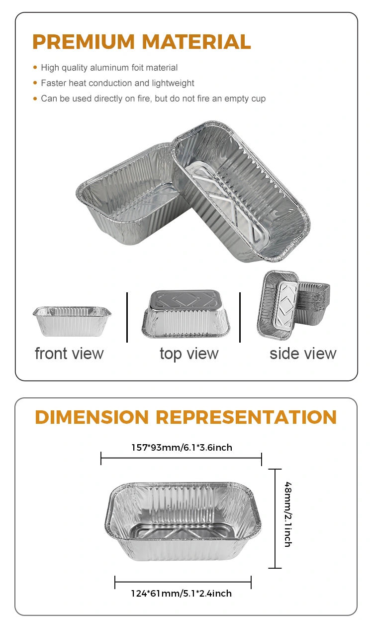 Правоъгълните контейнери за алуминиево фолио от фритюрник на въздуха, произведени от доставчика на алуминиеви фолио на Yunchu, са подходящи за много сценарии като поръчки за извличане на кетъринг, хлебни торти, семейни закуски и ресторанти. Контейнерът е изработен от алуминиево фолио от хранителен клас, гарантирайки безопасността по време на процеса на печене на храни. В допълнение, този контейнер е подходящ и за поставяне на храни, сортиране на плодове и зеленчуци и дегустация на закуски за търговски центрове. Контейнерът е интегриран като цяло, а подгъваният дизайн е обмислен, за да избегне надраскването на ръцете ви. Предлагат се множество размери, за да избирате, за да отговаряте на различни сценарии за използване. Ако имате някакви въпроси или се нуждаете от повече информация, не се колебайте да се свържете с нас.