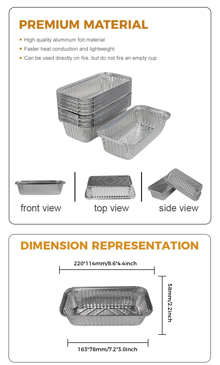 Yunchu aluminum foil supplier, Rectangular barbecue thickened Silver Aluminum Foil Containers, long-lasting baking resistant open flame available, upgraded height to prevent touching the wall of the pot, heightened design to prevent soup from flowing out, food is not easy to stick, easier to take, smooth edge use without cutting hands, inward folding edge to prevent cutting hands Details are treated carefully, direct contact with containers, can be used as edible Контейнерите, еднократната употреба е без притеснения и почистване, няма нужда да почиствате и хигиенични след употреба, използвайте стойността на рециклирането на мръсни алуминиеви фолио, по отношение на контрола на качеството, ние строго наблюдаваме всяка стъпка на производство, за да гарантираме, че всички продукти отговарят на националните стандарти за безопасност. Компанията е получила сертификата за безопасност на алуминиевите материали за опаковане на храни, издадени от държавата, и е преминала немското сертифициране на ERP, сертифицирането на ЕС SGS и сертифицирането на ISO9001.