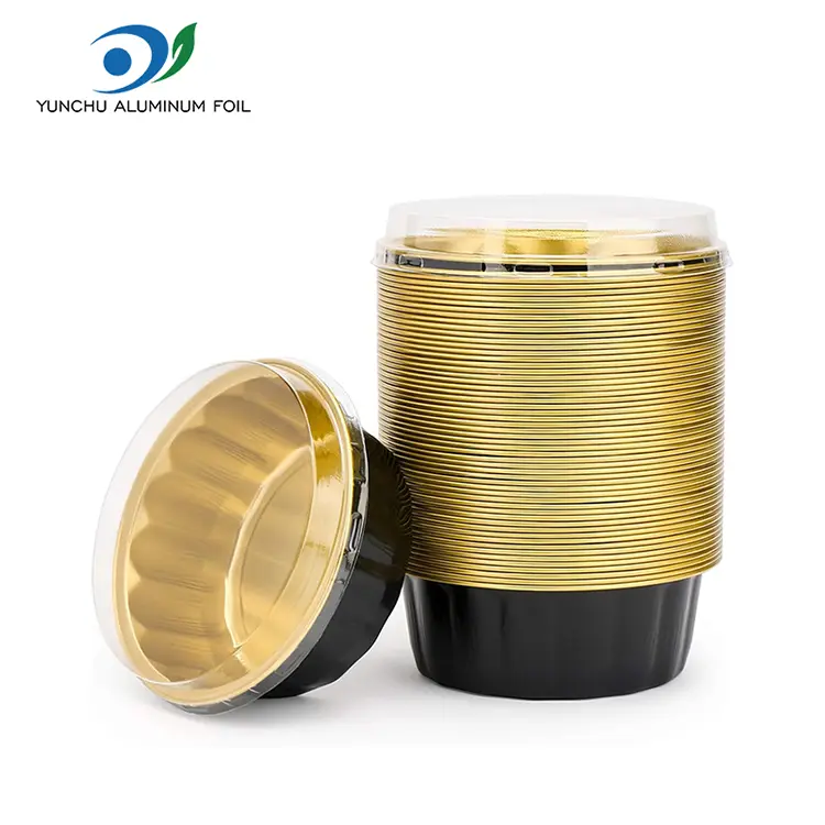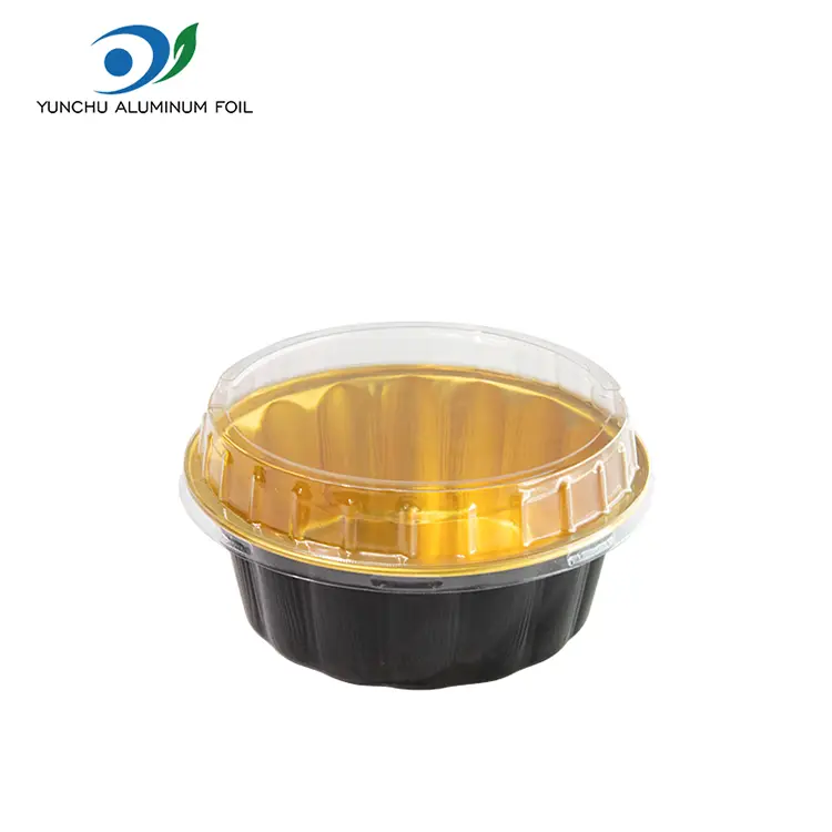 Yunchu алуминиев доставчик на фолио за кръгла купа за десерт с контейнери за алуминиево фолио за десерт Общата наличност на продукта се използва широко в магазините за удобства, търговските центрове и други сцени и може да се почисти и използва повторно, обхватът на висока температура може да бъде в фурната, въздушен флаер и др Флайерът на фурната или въздуха, той също е идеален избор за поемане, кетъринг, печене и други индустрии.