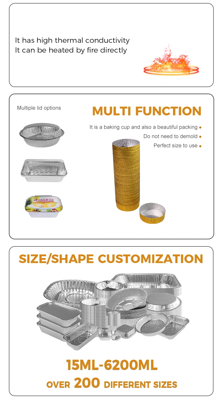 Този кръгъл малък кръгъл малък контейнер за печене на алуминиево фолио е персонализиран от фабриката Yunchu и е изработен от сребърно алуминиево фолио, модел J35-16. Той е идеален за сервиране на малки порции храна, като закуски и желета, за да отговори на нуждите на съвременните потребители за малки и разнообразни порции за храна. Удобно е да се наслаждавате сами или да споделяте с другите.